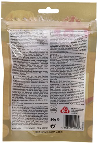 8in1 Grills Bacon Style Hähnchenfleisch, Belohnung für Hunde mit hochwertigem, 4 Packungen (4 x 80 g)