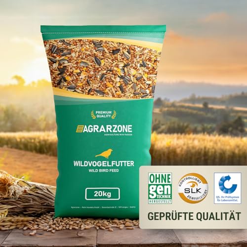 Agrarzone Vogelfutter Wildvögel ganzjährig 20kg- Wildvogelfutter 20 kg mit hochwertigem Körner- Mix für alle Vögel- Fettfutter mit Sonnenblumenkerne- Staubfrei & ohne Zusatzstoffe