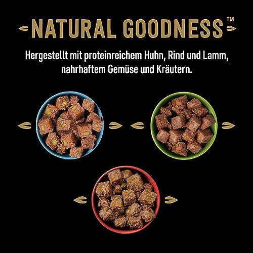 Cesar Natural Goodness in Loaf ist ein hochwertiges Nassfutter in praktischen 400 g-Dosen für erwachsene Hunde. Das Rezept basiert auf natürlichen Zutaten und ist angereichert mit Vitaminen und Mineralstoffen, um eine vollwertige, ausgewogene Ernährung zu unterstützen. Die getreidefreie, proteinreiche Mischung steht im Mittelpunkt und enthält Huhn als Hauptzutat, ergänzt durch Süßkartoffeln, Erbsen und Cranberries. Zusätzlich liefern Omega-6-Fettsäuren, Kalium und Antioxidantien eine Unterstützung von Haut, Fell und Immunsystem. Die Dosen sind vollständig recycelbar und tragen so zu einer verantwortungsvollen Futternutzung bei. Geeignet für Hundebesitzer, die Wert auf eine naturnahe Ernährung legen und gleichzeitig eine praktische Futterlösung suchen.