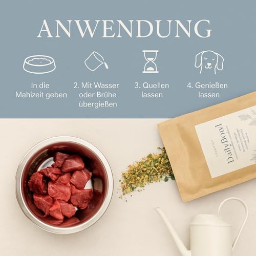 DailyBowl von Pepper’s Manufaktur- Barf- Topping & Ergänzungsfutter für Hunde, Getreide- & glutenfrei, natürliche Kräuter- Obst- & Gemüsemischung für eine ausgewogene Rohfleischfütterung (500g)