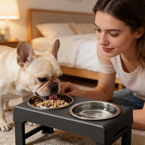 Verstellbare, erhöhte Hundenäpfe aus Edelstahl mit 3 Höheneinstellungen: rostfrei, leicht zu reinigen und ideal für mehrere Haustiere. Ergonomische Fütterung für mehr Komfort und saubere Mahlzeiten.
