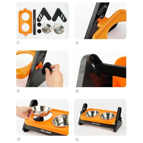 Der erhöhte Futternapf für Hunde bietet eine ergonomische Fütterungslösung, die Nacken- und Gelenkbelastungen reduziert. Mit einem Neigungswinkel von 15 Grad unterstützt er eine natürliche Futterposition, fördert eine angenehme Verdauung und erhöht den Komfort beim Füttern – ideal für kleine bis mittelgroße Rassen sowie Katzen. Der Ständer ist höhenverstellbar, sodass Haustierbesitzer die Futterhöhe flexibel an Tiergröße und Umgebung anpassen können. Abnehmbare, langlebige 304-Edelstahlnäpfe garantieren Rostbeständigkeit, einfache Reinigung und eine langanhaltende Nutzung. Die Montage erfolgt unkompliziert über verschraubte Komponenten, sodass der Aufbau zügig erledigt ist. Dank der Doppelnapf-Variante können Trocken- und Nassfutter sauber getrennt serviert werden, was Hygiene und Übersicht am Futterplatz erhöht – drinnen wie draußen, in Küche, Wohnzimmer, Garten oder Hof.