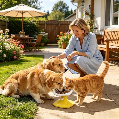 Höhenverstellbares, sicheres Futterhaus mit rutschfester Saugbasis. Zur Verbesserung der Fütterungsposition, leicht zu reinigen und fügt sich stilvoll in Wohnzimmer oder Garten ein.