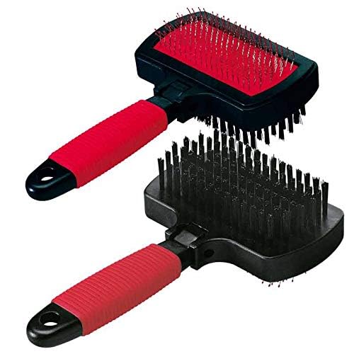 Kardierbürste für Hunde mit zwei Anwendungsmöglichkeiten: weiche Borsten für sanfte Haarentfernung und Edelstahlborsten für gründlichere Entfilzung. Ideal für mittel- bis langhaarige Tiere.