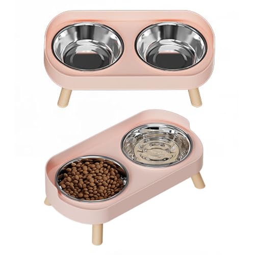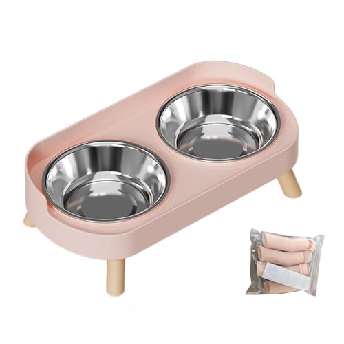 Generic Erhöhtes Hundenapf- Set, Spritzwassergeschützter Schutz, Bequeme Höhe Zum Fressen, Erhöhte Futter- und Wassernäpfe für Hunde, Doppelte Hundefutternäpfe mit Rutschfesten Fußpolstern für Zuhause