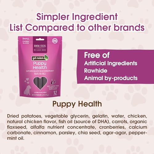 Get Naked Grain Free Puppy Health Dental Chew Sticks Small – getreidefreie Zahnpflege-Snacks für kleine Welpen, 6.2 oz. Unterstützt Zahngesundheit beim Kauen.