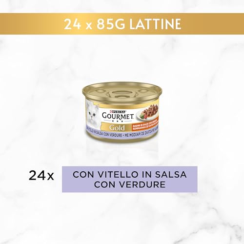 Gourmet Purina Gold Feuchtigkeit Katzenwürfel in Sauce mit Kalbsleder aus Sauce mit Gemüse- 24 Dosen à 85 g pro Packung (24 x 85 g)