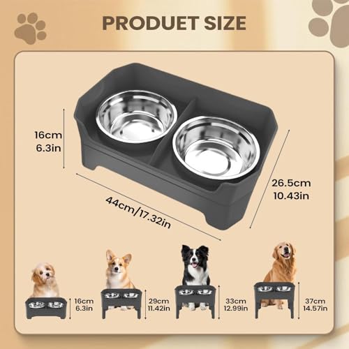Hundenäpfe- Erhöhter Futternapf | Erhöhte Hundenäpfe mit Ständer, 4 höhenverstellbare Edelstahl- Doppelnapf- Set für große Hunde, Spritzschutz, langsames Füttern, für Welpenfressen, Trinktraining