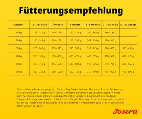 JOSERA Junior Kids Huhn & Reis ist ein hochwertiges Trockenfutter speziell für wachsende größere Hunde. Die glutenfreie Rezeptur mit Huhn und Reis unterstützt eine gesunde Entwicklung ab der 6. Lebenswoche und eignet sich besonders für heranwachsende Hunde mittlerer und großer Rassen. Das ausgewogene Calcium-Phosphor-Verhältnis fördert einen stabilen Knochenbau und optimales Wachstum. Zusätzlich unterstützen Grünlippmuschel und Omega-3-Fettsäuren aus Lachsöl die Gelenkfunktion. Das Futter kommt ohne Weizen, Soja, Zucker sowie künstliche Farb- und Aromastoffe aus und wird unter deutscher Qualität in einem mittelständischen Familienbetrieb mit eigenem Lebensmittellabor hergestellt. Geeignet ohne Futterumstellung bis ins Erwachsenenalter und damit eine stabile Versorgung während der Wachstumsphase. Mit kontrollierten, hochwertigen Zutaten bietet es eine verlässliche Nahrung für größere Welpen und heranwachsende Hunde.