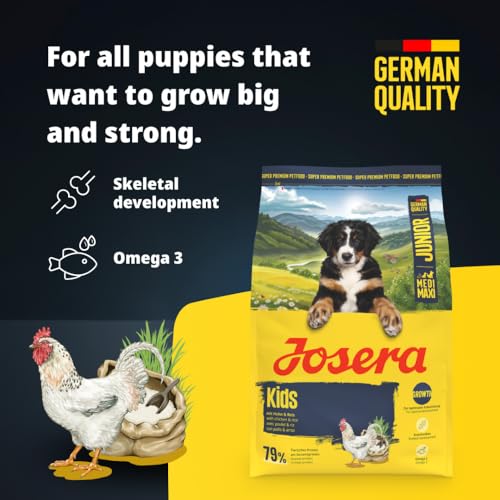JOSERA Junior Kids Huhn & Reis (5 x 900 g) | Premium Trockenfutter für wachsende größere Hunde | zur Aufzucht & optimalen Versorgung größerer Welpen ab der 6. Lebenswoche | glutenfrei | 5er Pack