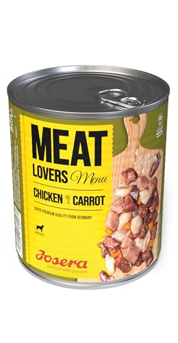 JOSERA Meat Lovers Menu Chicken with Carrot (6 x 800 g) | Adult | Premium Nassfutter für ausgewachsene Hunde | Huhn mit Karotte- mit viel Fleisch (65%) | weizenfrei | Hundefutter nass | 6er Pack