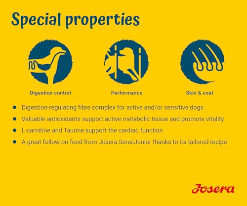 Josera Sensi Adult Trockenfutter 12,5 kg bietet Hunden eine ausgewogene Ernährung mit hoher Verdaulichkeit. Das Futter unterstützt den täglichen Bedarf erwachsener Hunde und überzeugt durch eine natürliche Rezeptur ohne künstliche Farb-, Aroma- und Konservierungsstoffe. Die sorgfältig abgestimmte Mischung aus hochwertigen Bestandteilen fördert eine stabile Verdauung und eine gesunde Haut- und Fellstruktur. Ideal für Tierbesitzer, die Wert auf eine zuverlässige, zweckmäßige Fütterung legen – komfortabel in der praktischen Großtauschpackung. Dieses Produkt eignet sich für aktiven Hundesport,.alltagstaugliche Familienhunde und alle Hunde, die eine hochwertige, gut bekömmliche Nahrung benötigen.