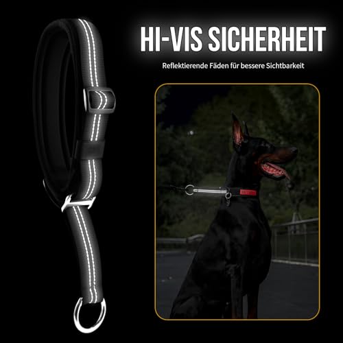 OneTigris Zug- Stopp Hundehalsband, Weich Gepolstert Breites Hundehalsband mit Reflektierend für Mittelgroße und Große Hunde, Schwarz L