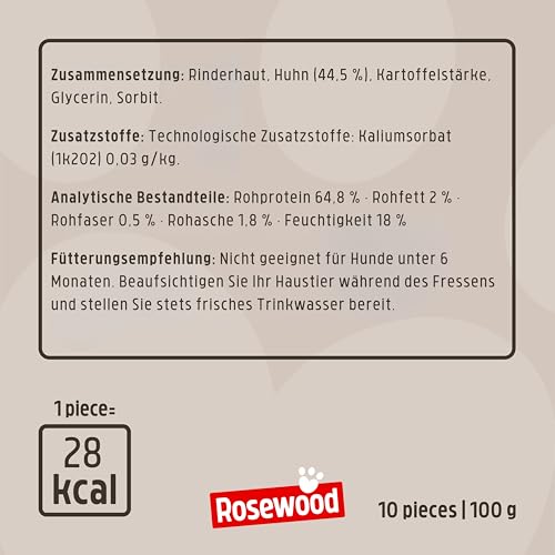 Rosewood Chewy Sticks Huhn Small- Kaustangen für Hunde mit Huhn, Rinderhautsnack, Rohhautsnack, unterstützt die Zahnpflege, ohne Getreide, ohne künstliche Zusatzstoffe, 100 g