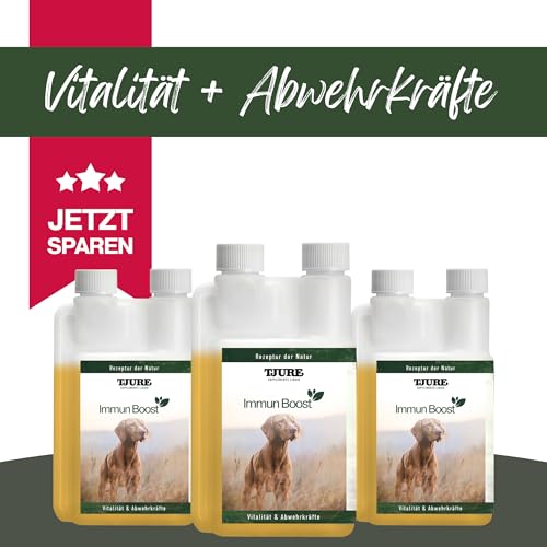 TJURE Immun Boost Liquid für Hunde | 3 x 500 ml Sparset | Ergänzungsfuttermittel mit Ginseng, Sonnenhut & Blütenpollen | Pflanzliche Rezeptur zur Unterstützung des Wohlbefindens | Made in Germany