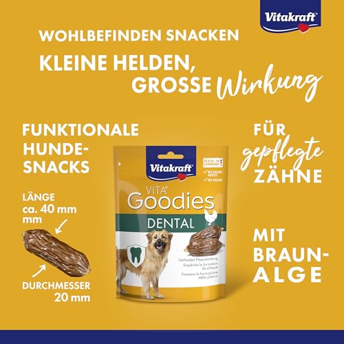 Vitakraft Goodies Dental, gesundes Hundeleckerli, mit Braunalge für gepflegte Zähne, ohne Zusatz von Zucker (1x 60g)